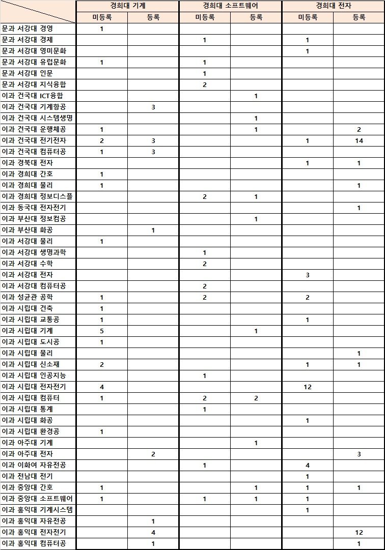 의외로 서울대 등록자가 압도적으로 많았음