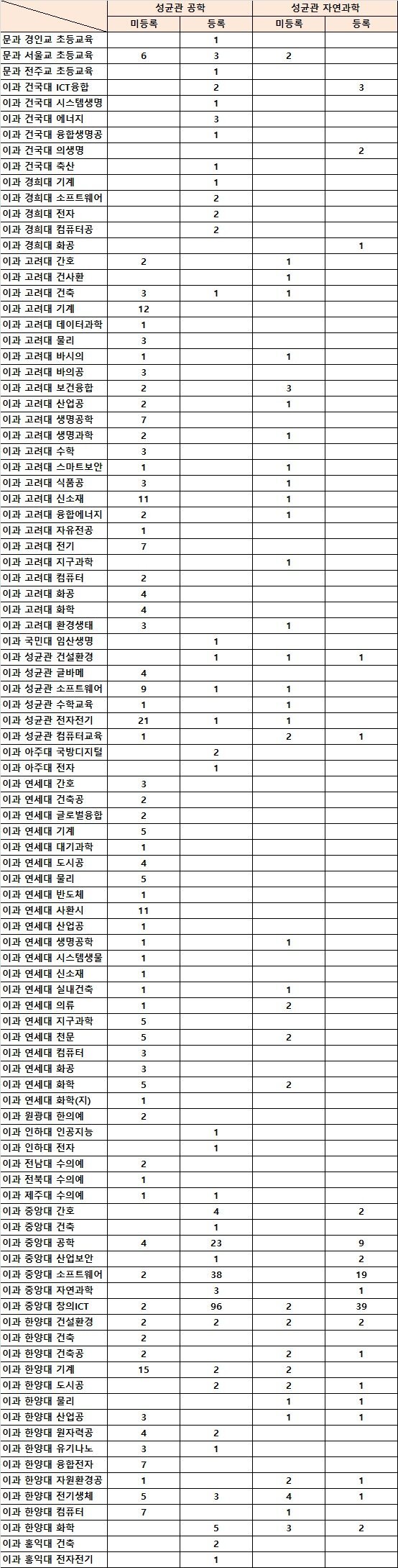 7. 성균관 자연계 vs 타대학