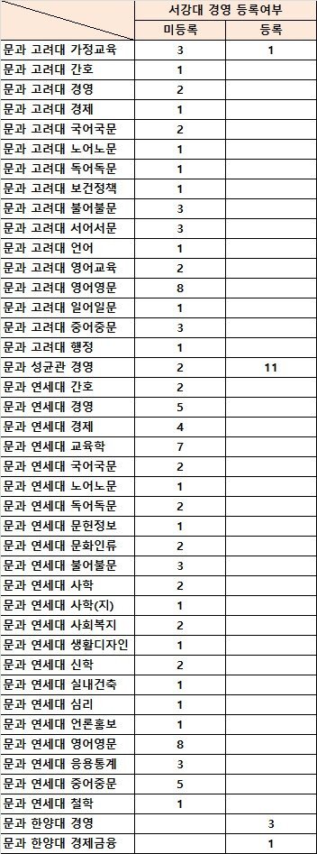 예를 들어 서강경영은 고연잡과 안쓰고 고연상경만 쓰는 경우가 많고.성글경은 50퍼이상인데