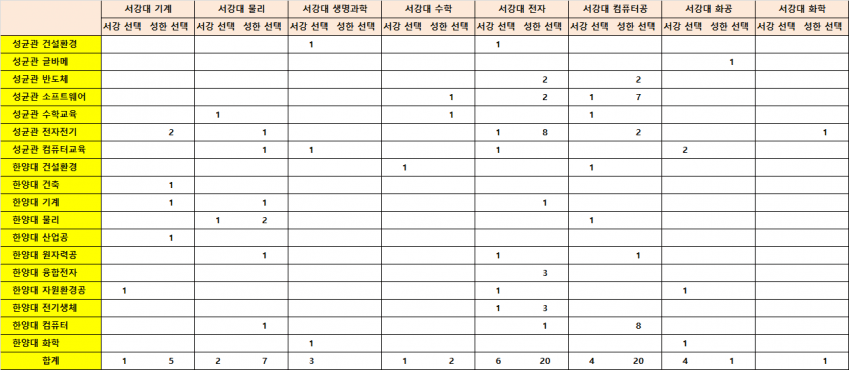 좀 충격적인건 서강물리붙고 한양물리 선택자가 3명중 2명이였다는거