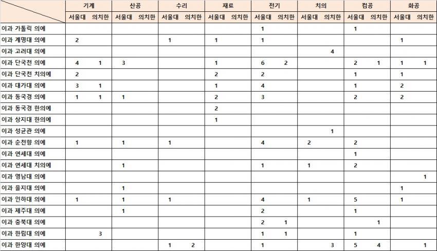 (서울대 중하위 학과로 가야 1-2명씩 의치한 빠진인원 존재)