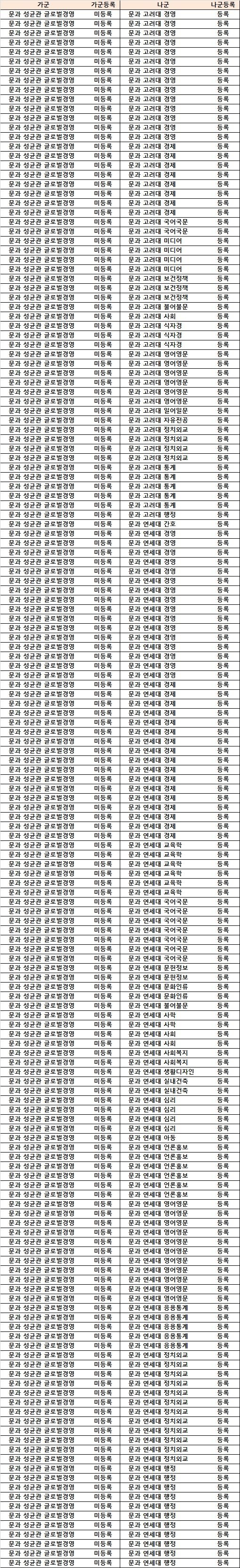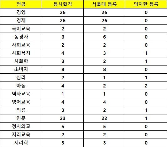 서성한 문과 탑인 성글경과 연고대 동시합격자들 최종등록 현황
