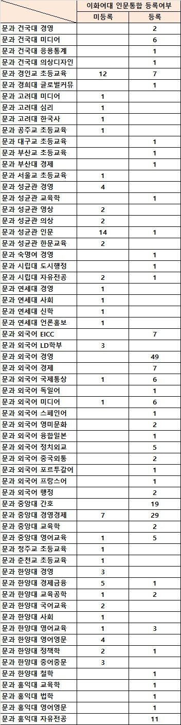 제일 핫한이슈 몇가지중 하나가 이대 인문과 타대 동시합격자 최종등록 선택이였는데