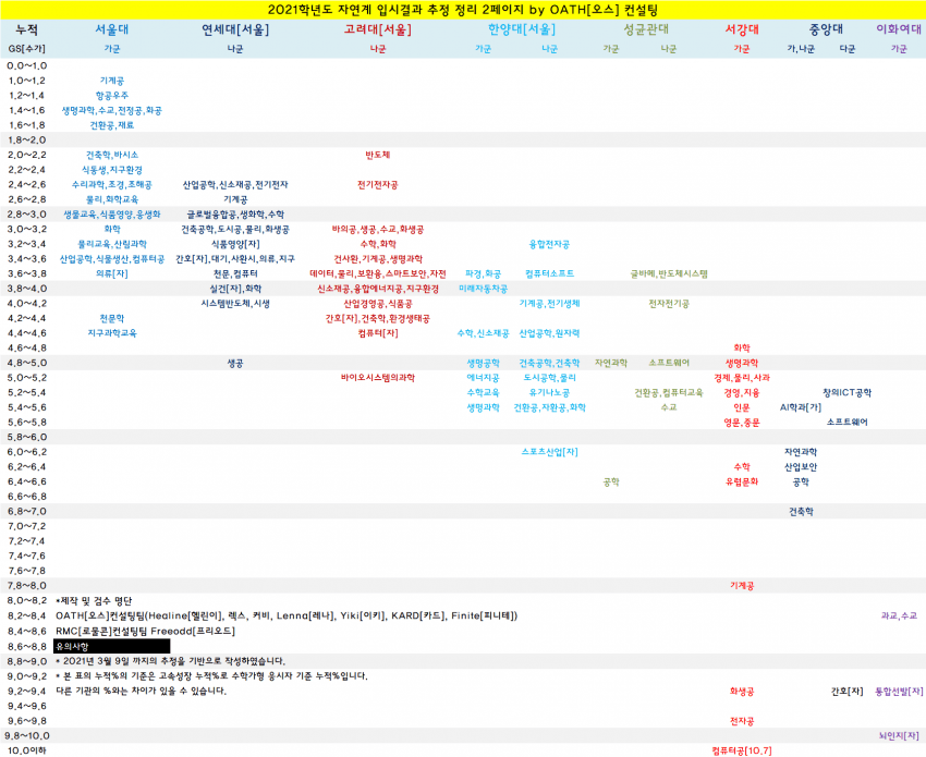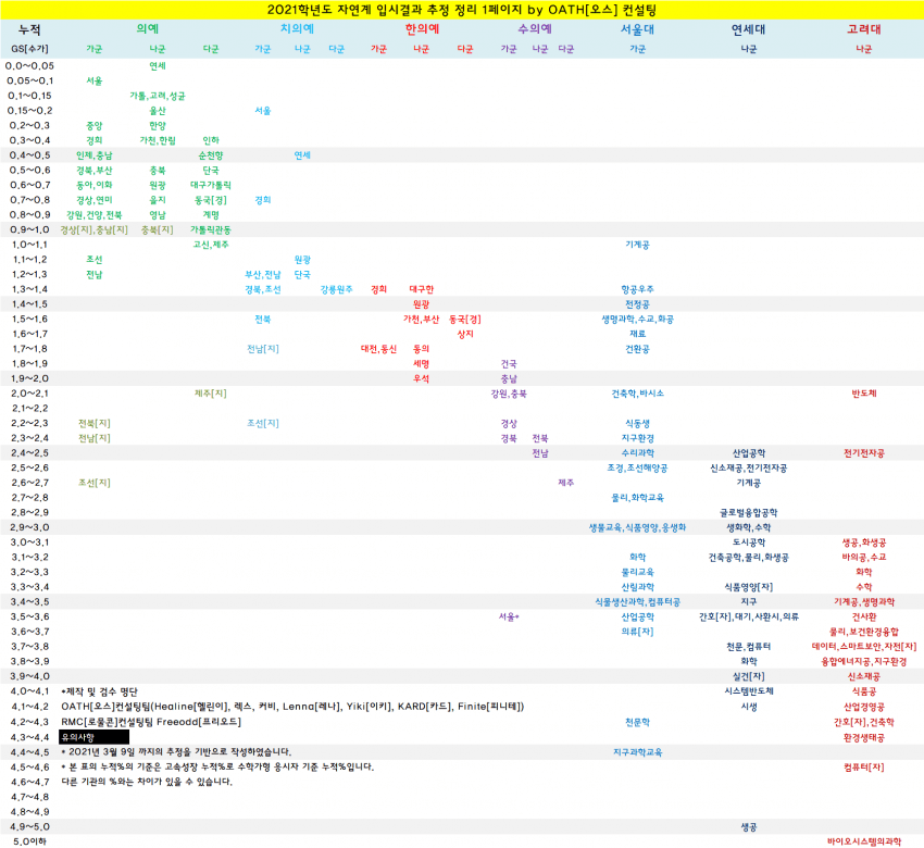 나머지 미발표 대학들은 2-3개 학과정도 약간의 변동 가능성 있다함