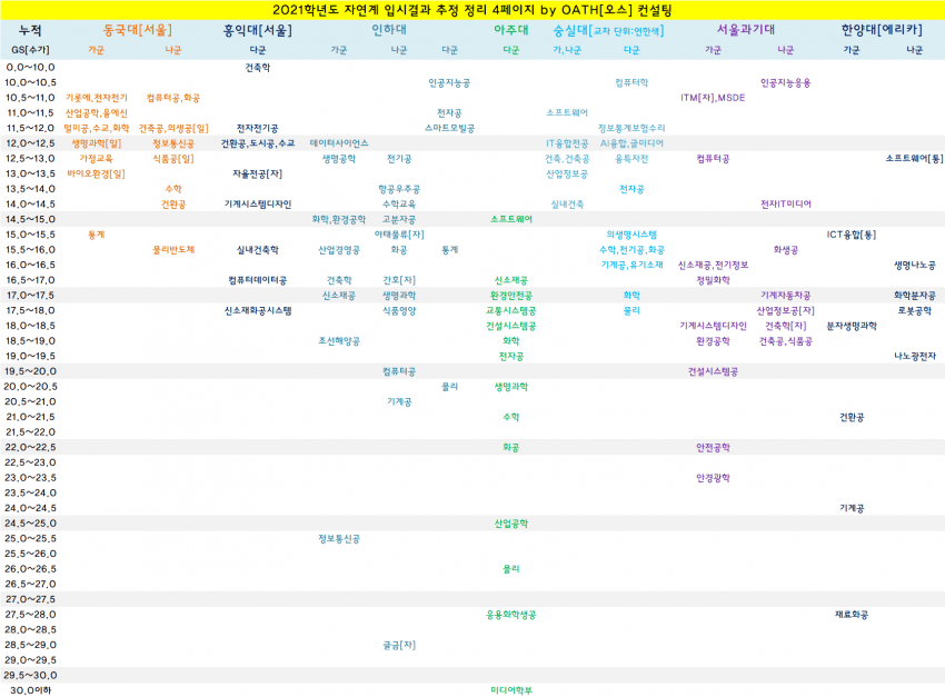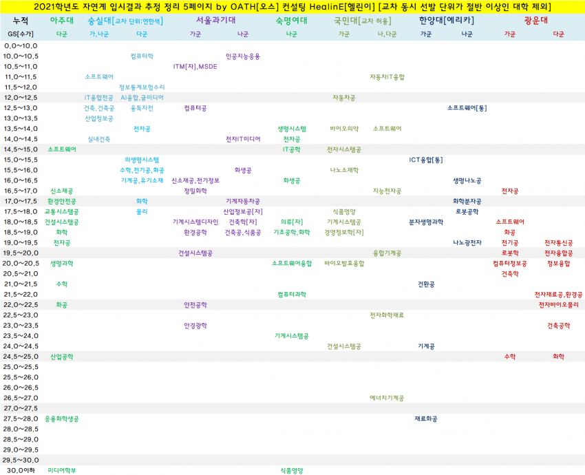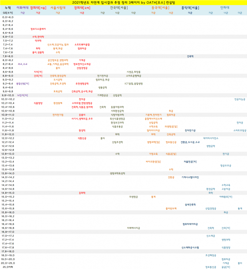 학교측에서 현재까지 정시입결 결과를 발표한 경희대, 건국대, 숭실대, 과기대, 에리카는 거의 100% 확정