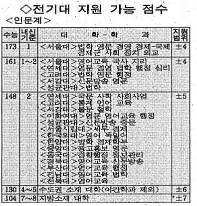 1995년 주요대학 인문계 배치표 작성자바실리자이체프|작성시간09.11.19|조회수2,529 목록 댓글 1 글자크기 작게가 글자크기 크게가 내가 생각하는 대학서열은? :서서연고 다음검색 현재 게시글 추가 기능 열기 북마크 공유하기 신고 센터로 신고 댓글 댓글 1 댓글쓰기 답글쓰기 댓글 리스트 작성자딩동댕 | 작성시간 09.11.19 썌긴썟구낭... 댓글 전체보기