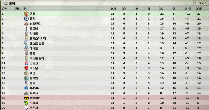 맨시티는 무승부가 엄청 많네요. 하지만, 놀라진 않았습니다. 어차피 두번째 시즌 정도 되면 우승권 이상은 하는 맨시티.
