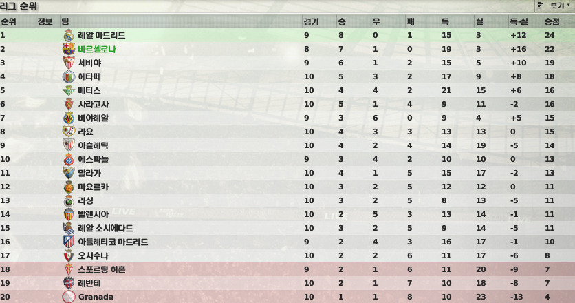 결과는 좋지 않습니다. 7승 1무지만, 스페인 리그는 1위 하려면 무승부가 많아선 안됩니다. 패가 있으면 더더욱 안되구요.