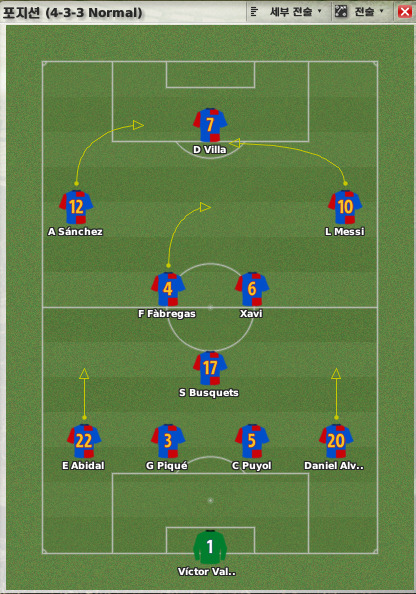 그리고 전 우선, 선수들을 살피고 포메이션을 결정하는데 바르셀로나가 실축에서 주로 쓰는 4-3-3 포메이션을 게임에서도