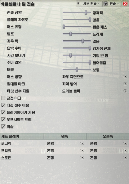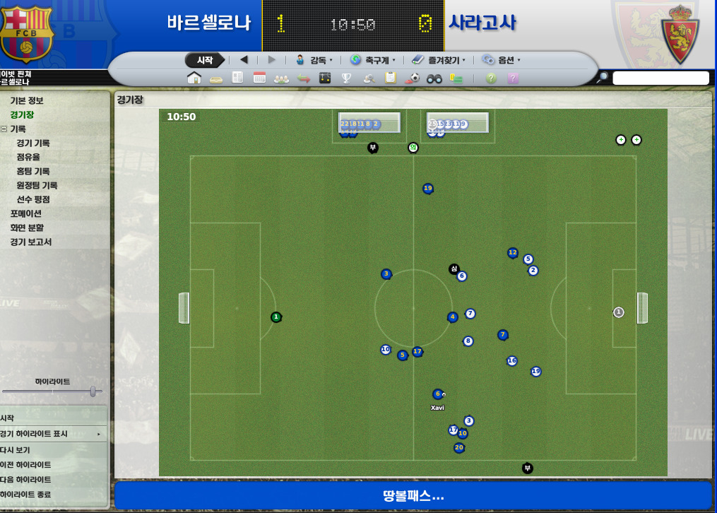 계속 유지됩니다. 템포는 느리게 짧은 패스로 패스 성공률을 높이면서 시간 보내기(수비적인 전술- 주로 이기고 있을 때