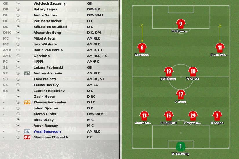 박주영이 부동의 원톱으로 출장하더군요. 많이 깜놀했습니다. 그리고 반페르시는 오른쪽으로 이동했군요.