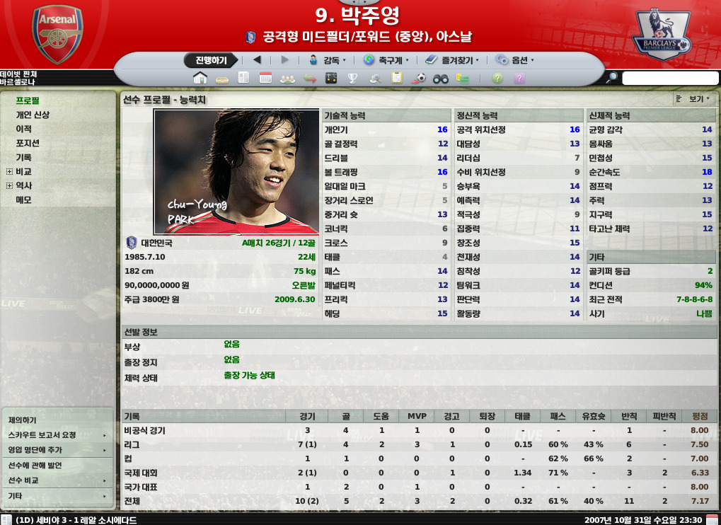 니다. 그리고 박주영은 능력치에 비해 에펨에서 활약이 좋기로 유명합니다. 왜그런지는 나중에 밝히기로 하고.