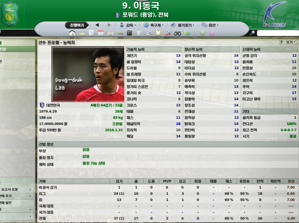 분배) 게임을 만드는 것인지 모르겠으나, 이동국에게는 좀 억울한 능력치입니다. 대표팀에도 안뽑혀 있는 걸 확인하고