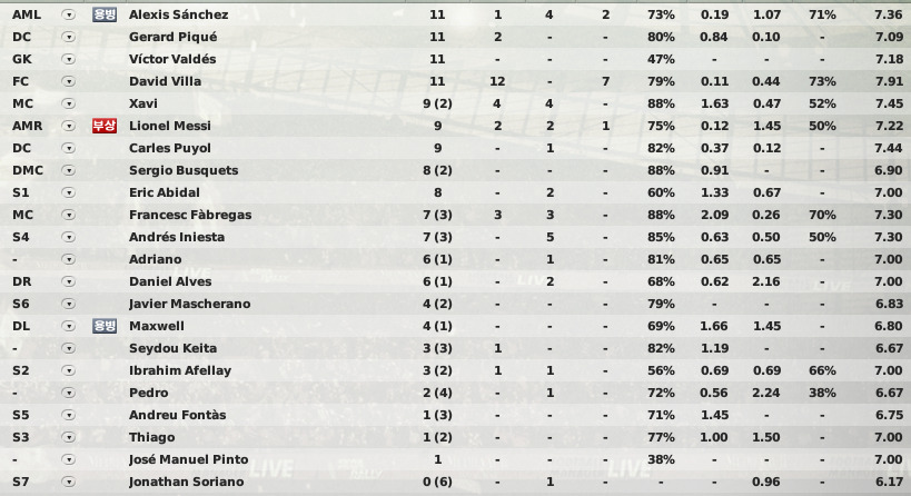 산체스처럼 빠른 선수는 일단, 쓰면 활약이 좋습니다. 이니에스타는 능력치 여건상 득점보다는 어시에 관여하는 스타일입니다.