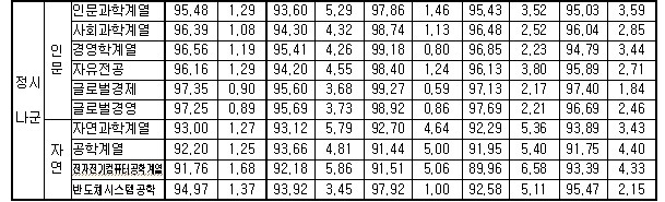 작성자나르치스 작성시간 10.07.31 성대는 문과고 이과고 언어 성적이 ㅋㅋㅋㅋㅋㅋㅋㅋㅋ 평균이 2등급이네;;