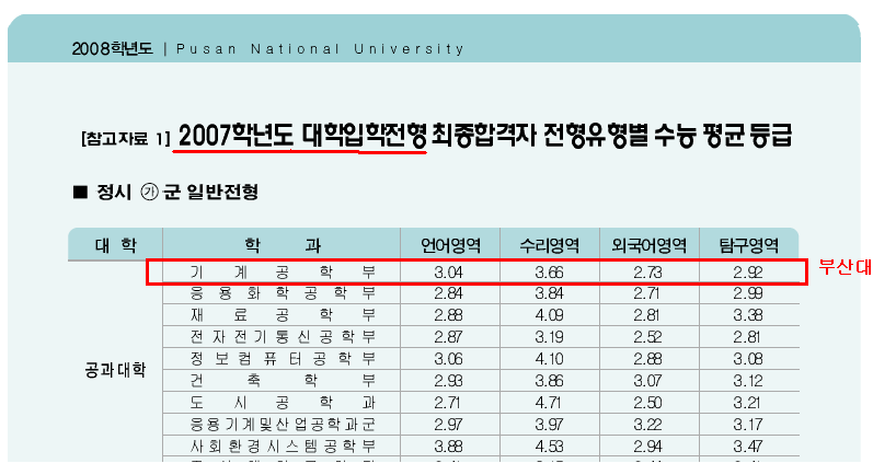 부산대 기계공학과(2007 입결)
