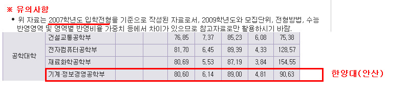 한양대(안산) 기계공학과(2007 입결)