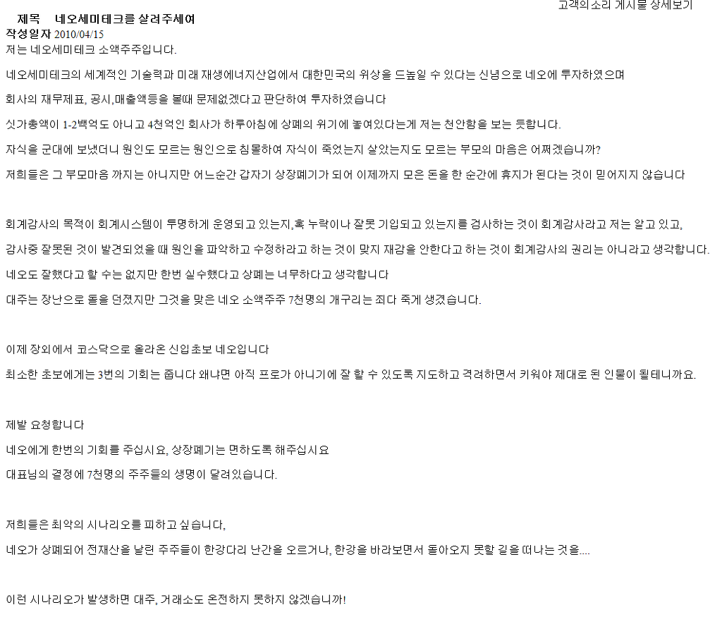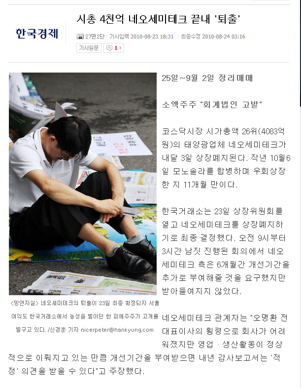 2010년을 뜨겁게했던 네오세미테크 상장폐지
