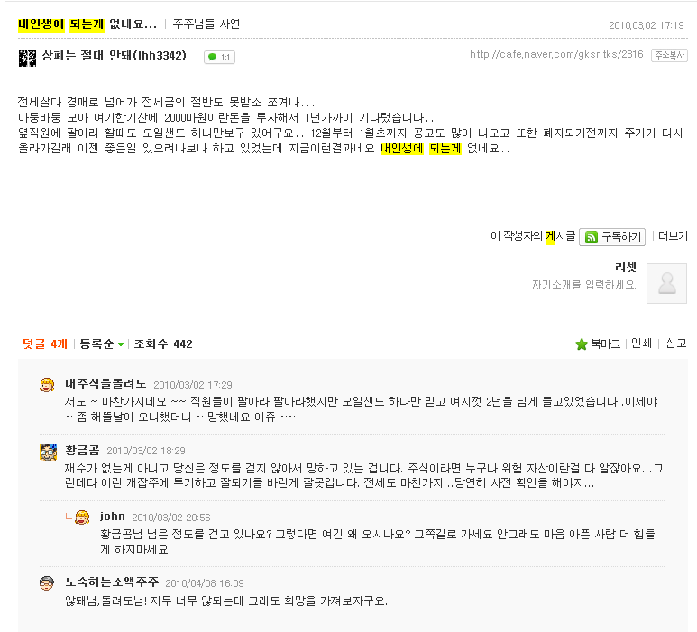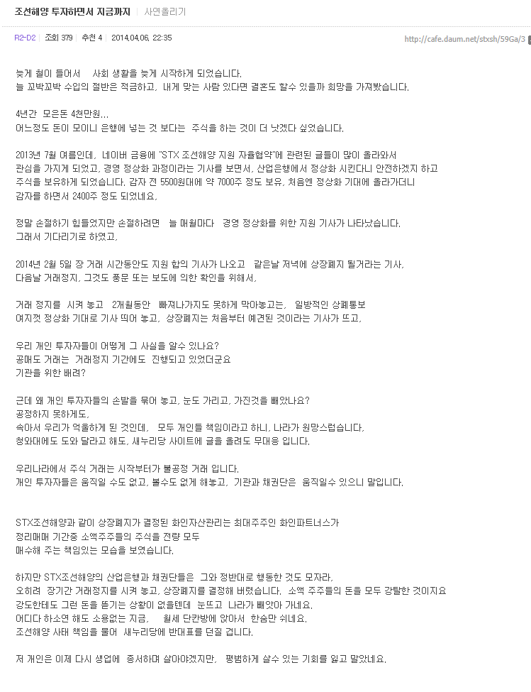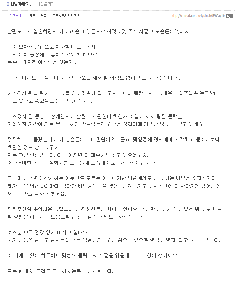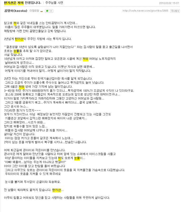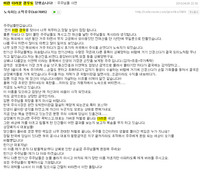 한기산 상폐를 통해 성숙해져서 더욱더 용기내서 살려고 하는 주주