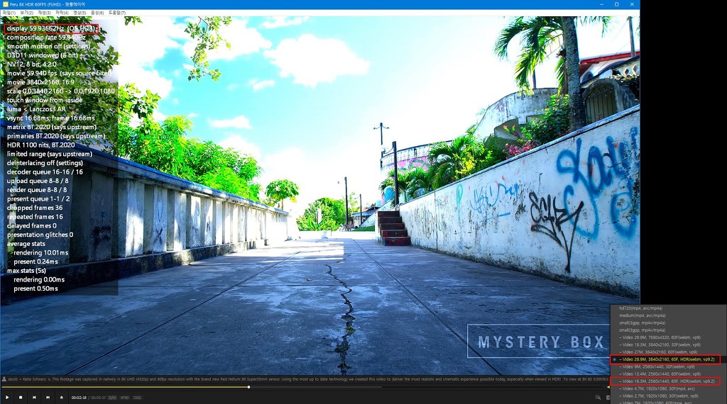 그래서 인터넷을 찾다보니 팟플레이어에서 HDR 동영상을 MadVR 렌더러를 통해 네이티브로 재생해주는 방법을 찾았습니다.