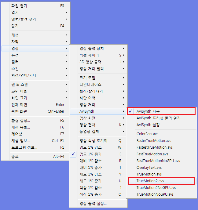 영상 AviSynth 에서 TrueMotion2.avs 체크