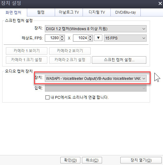 마찬가지로 이 믹서의 기본 녹음 장치는 VoiceMeeter Out입니다.