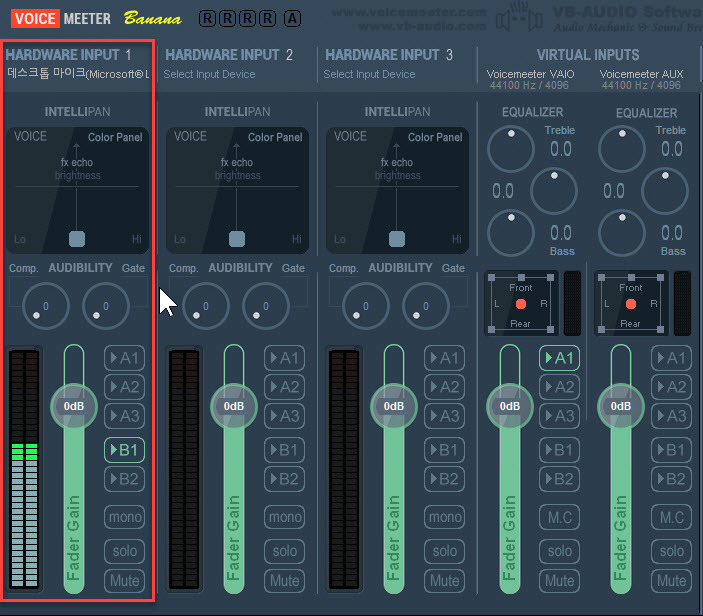 마이크를 b1에 설정한 것도 같은 이유에요. 보이스미터 오른쪽에 master section의 네번째 칸이 b1인데 이게 윈도우의 기본 녹음 장치를 대신해서 사용이 되게 됩니다. 단 여신님의 경우에는 이 부분이 필요가 없으니 굳이 b1을 선택할 필요는 없습니다. -