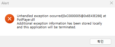 팟플 자체의 문제가 아닐 거도 같은 데 저 메세지를 봐도 dll 파일에서 오류가 났다는 것만 알지 도무지