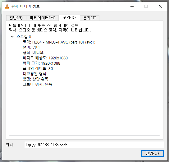 VLC에서 재생할 때의 코덱은 아래와 같이 캡쳐했습니다.