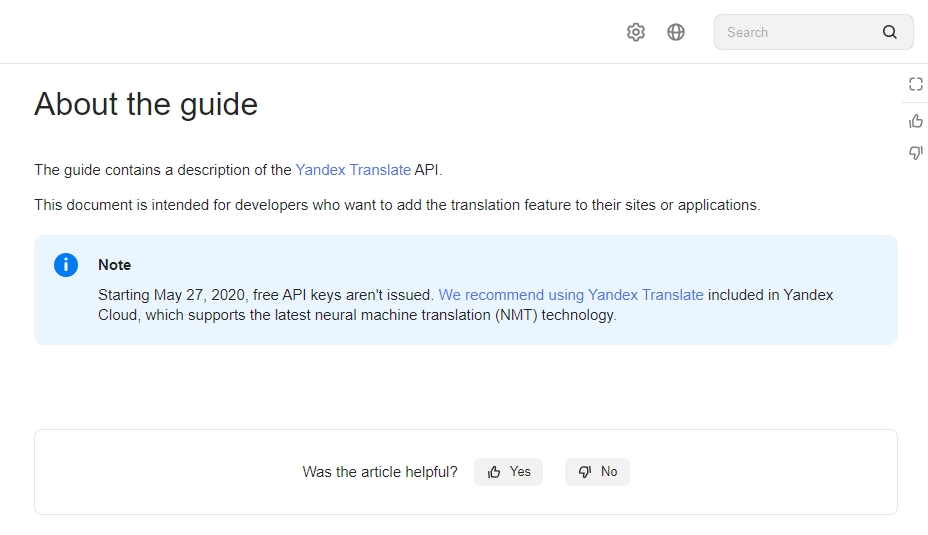 [오류신고]실시간 번역 yandex 작동 안하네요 작성자친절맨|작성시간24.03.13|조회수639 목록 댓글 1 글자크기 작게가 글자크기 크게가 2020년 5월 27일 부터 API키 무료 발급이 중단 됐다고 합니다. https://yandex.com/dev/translate/doc/en/ 다음검색 현재 게시글 추가 기능 열기 북마크 공유하기 신고 센터로 신고 댓글 댓글 1 댓글쓰기 답글쓰기 댓글 리스트 작성자팟플.개발자 | 작성시간 24.03.14 해당 사항에 대해서는 방법이 없습니다.관련 확장은 추후에 제거 하도록 하겠습니다. 댓글 전체보기