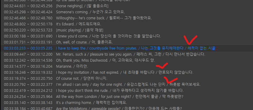 다만 "I have to keep the"와 합쳐서 번역 하는것은 smi자막의 경우는 처리 되어 있지만 srt자막은 처리가 되어 있지 않는데..