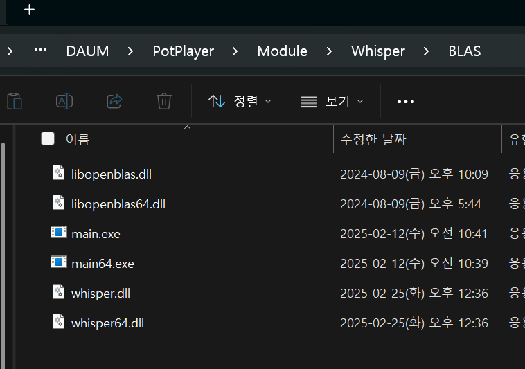 BLAS -> https://twg.kakaocdn.net/potplayer/PotPlayer/whisper.engine/BLAS.zip