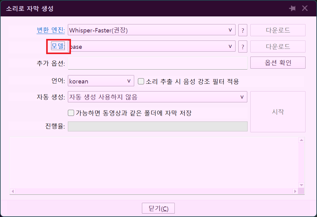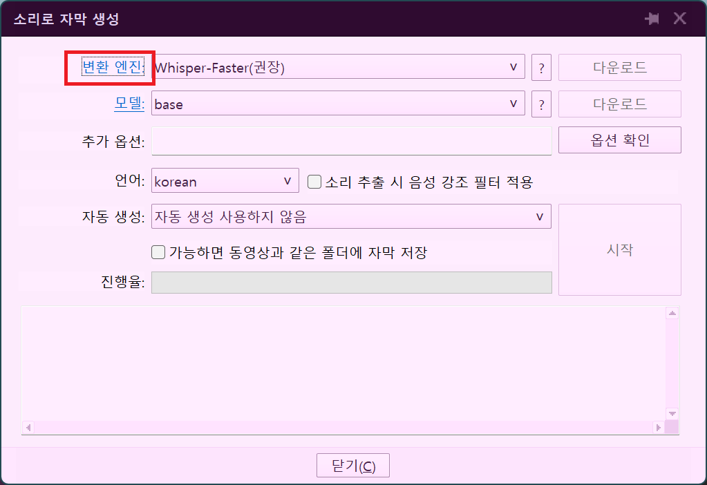 소리로 자막 생성을 실행한 뒤에... 변환 엔진을 클릭해서 엔진 폴더를 엽니다.