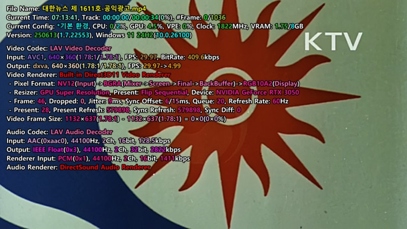 위 캡쳐처럼 잘 작동하던 GPU Super Resolution 기능이