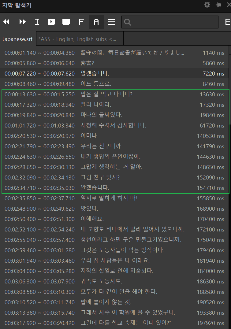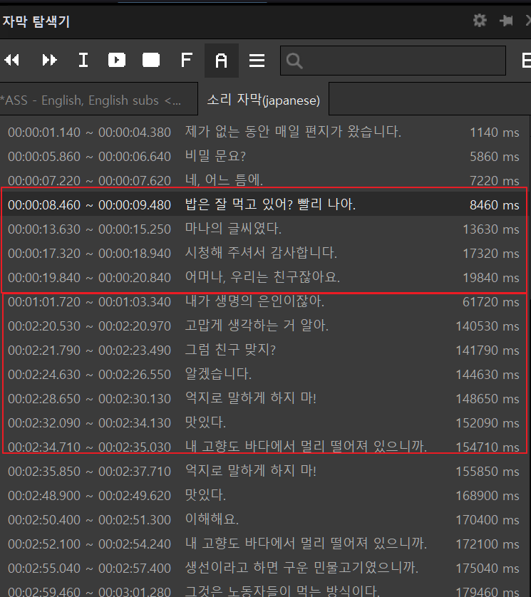 소리자막으로 생성된 srt 자막파일을 불러왔을땐 정상