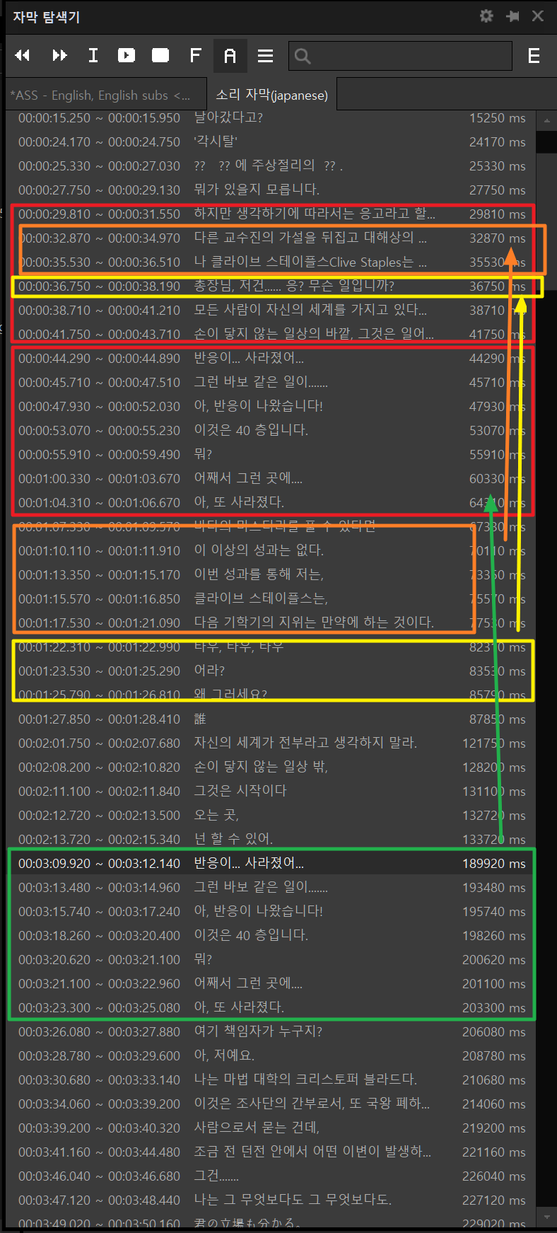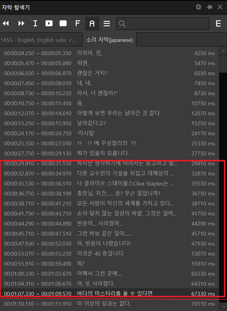 초반 몇분간 소리와는 다른 자막이 출력됩니다