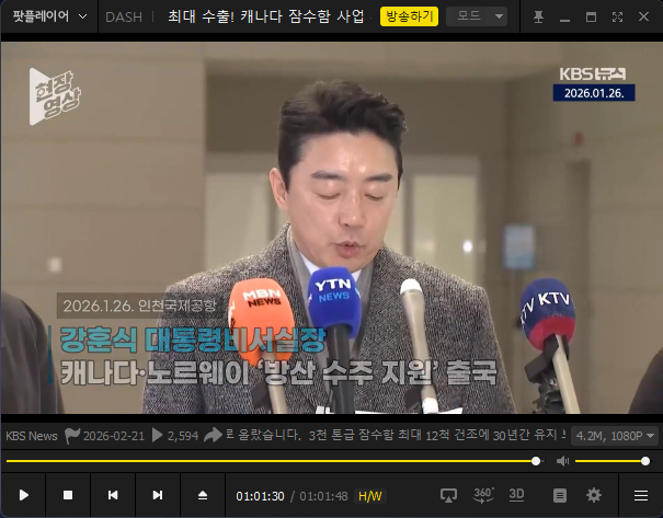 재생목록의 라이브방송(카카오TV)들은 정상적으로 해상도 변경및 고화질 시청이 가능합니다.