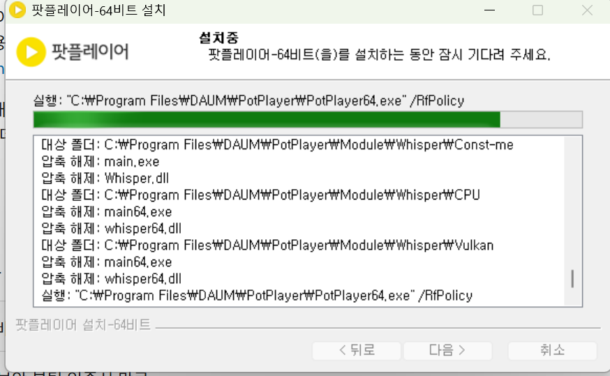 팟플레이어를 설치를 할 때도 이 부분에서 평소와 다르게 오랜 시간이 소요됩니다.