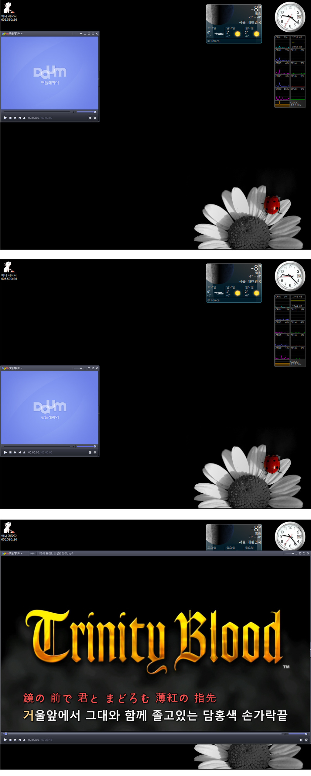 그런데 마지막 사진처럼 동영상을 하나 실행시키고 끈 다음에 다시 실행시키면 맨위 사진에 보이는 위치에서 프로그램이 실행됩니다.