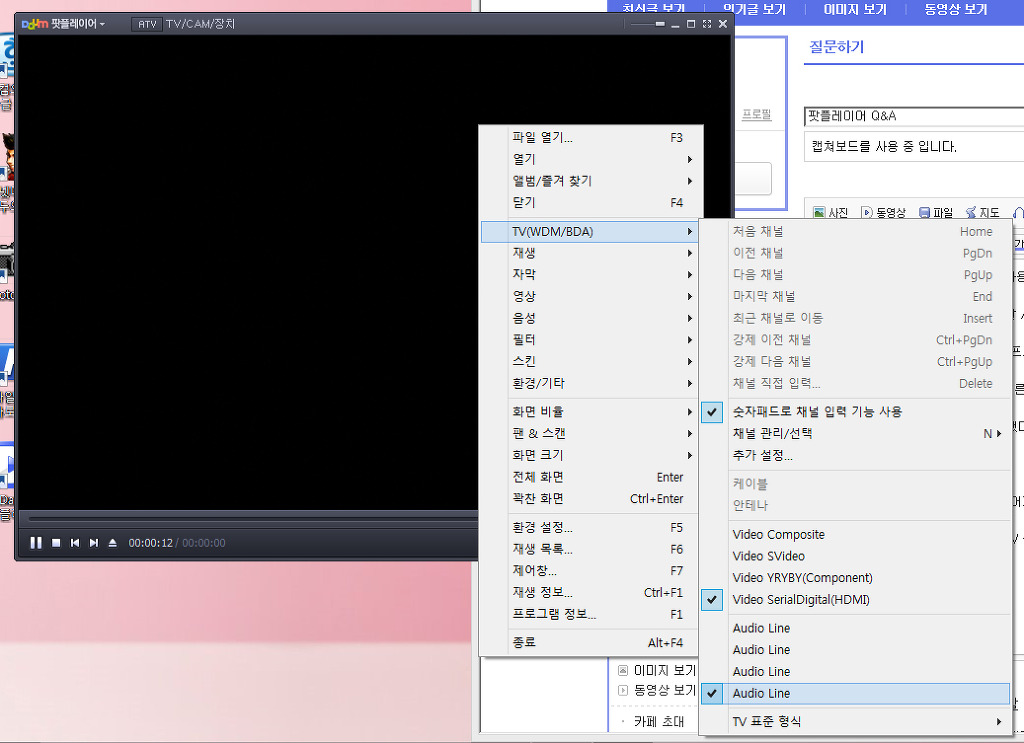 팟플레이어에서 아날로그 TV로 부른 후 환경설정에서 맞춰주면 됐었는데