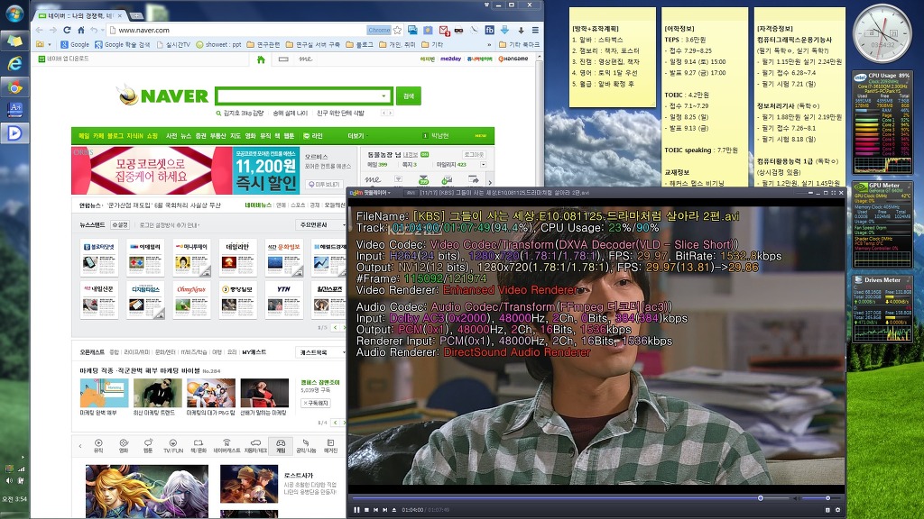 지금 스샷의 파일은 720p영상인데, 고작 720p짜리를 제대로 재생못한다는게