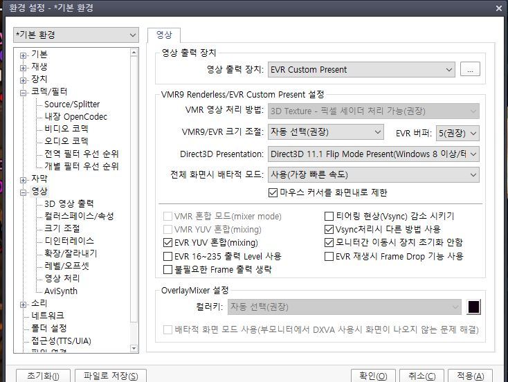 dxva, Direct3D Present만 Direct3D 9Ex Flip Mode Present만 설정하니 정말 최고입니다