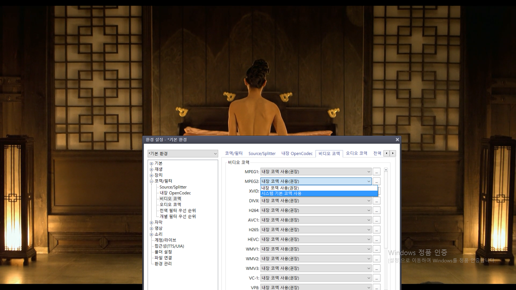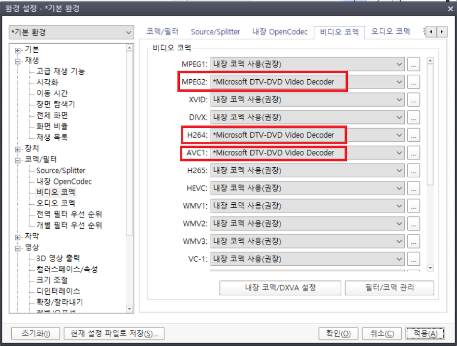 제 다음팟 플레이어 64비트 비디오코엑에는 내장코덱사용과 시스템 기본 코덱 사용밖에 없네요.
