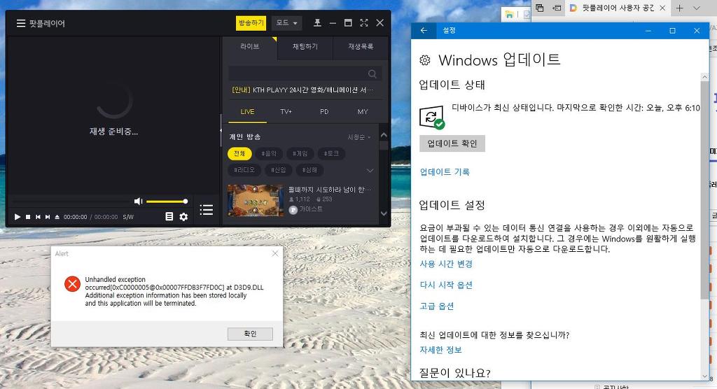위와 같이 언젠가부터 영상 재생시 오류가 발생합니다. 카페 글보고 드라이버 바꾸고 윈도우 최신버전으로 유지하고 팟플레이어 초기화도 해봤는데 여전히 메세지 계속 뜨네요 글카 드라이버 클린 삭제하고 실행해도 위와 같이 뜨네요 제가 혹시 안해본게 잇나요?? 관리자님이 원격으로 좀 봐주실수 있는지요?? 해결법이나 관리자분 보시면 답장좀 주세요 너무 답답하네요 ㅠ ㅠ