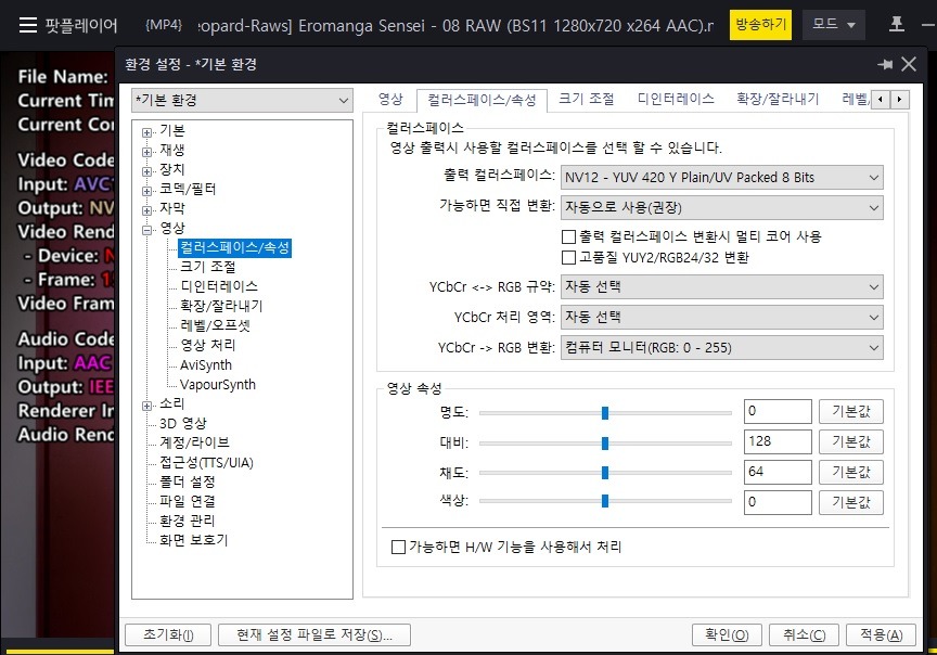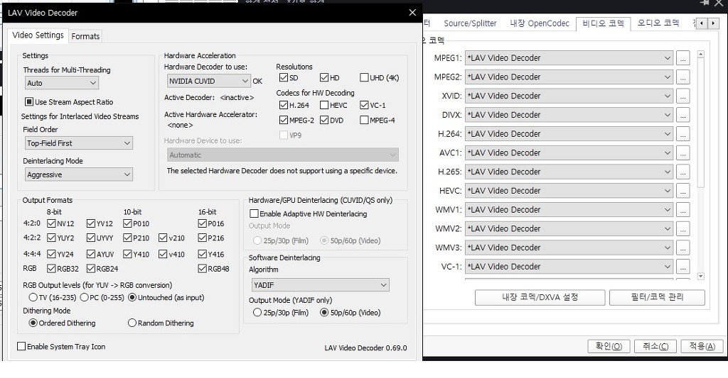 팟플,lav,madvr. 32비트로 설치했습니다