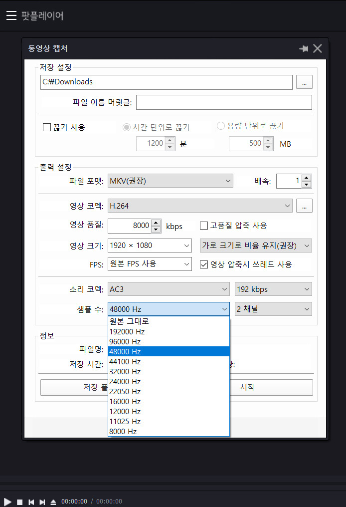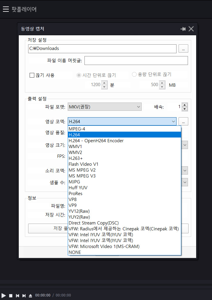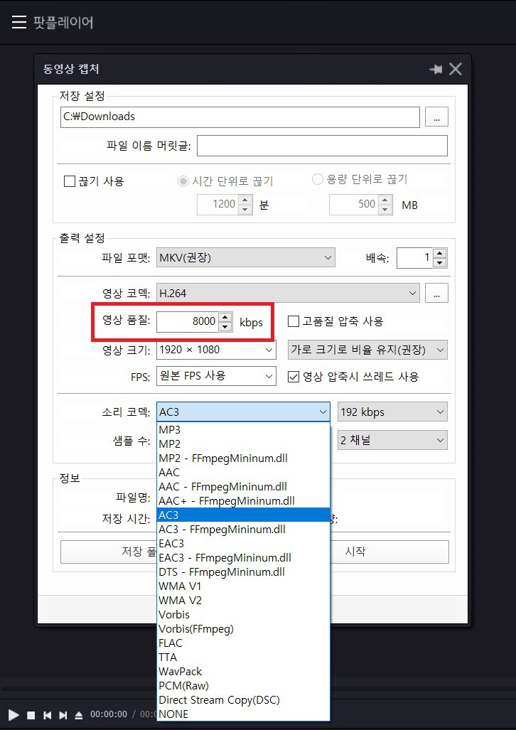 웹캠 녹화 할때 코덱이나 품질 같은거 어디를 어떻게 설정해야 하는지