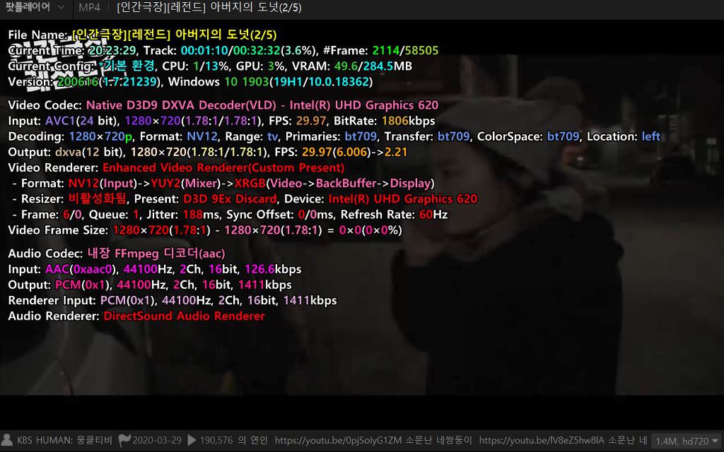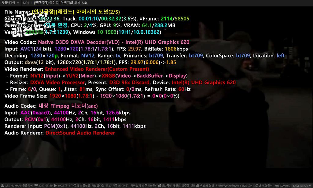 이 영상이 아닌 다른 해상도의 다른 영상들(드라이브에 보유 중인 영상)에서도 마찬가지이며,