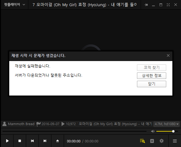 영상에 따라 재생이 정상적으로 되는 경우도 있고, 위와 같이 재생이 안되는 경우가 있습니다.