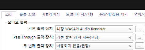 기본출력장치를 저렇게 설정하고 그 옆에 버튼을 눌러 설정으로 드렁가면
