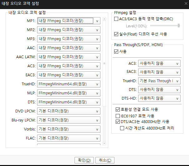 TrueHD만 패스쓰로를 하고자 한다면 저렇게 설정 하면 됩니다.